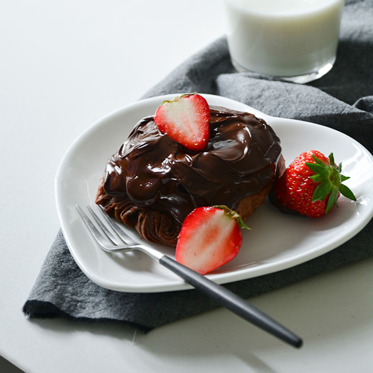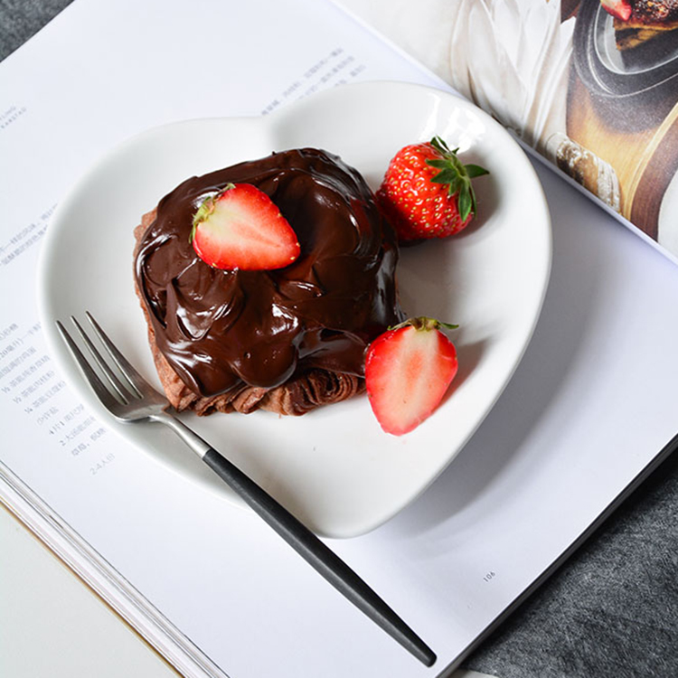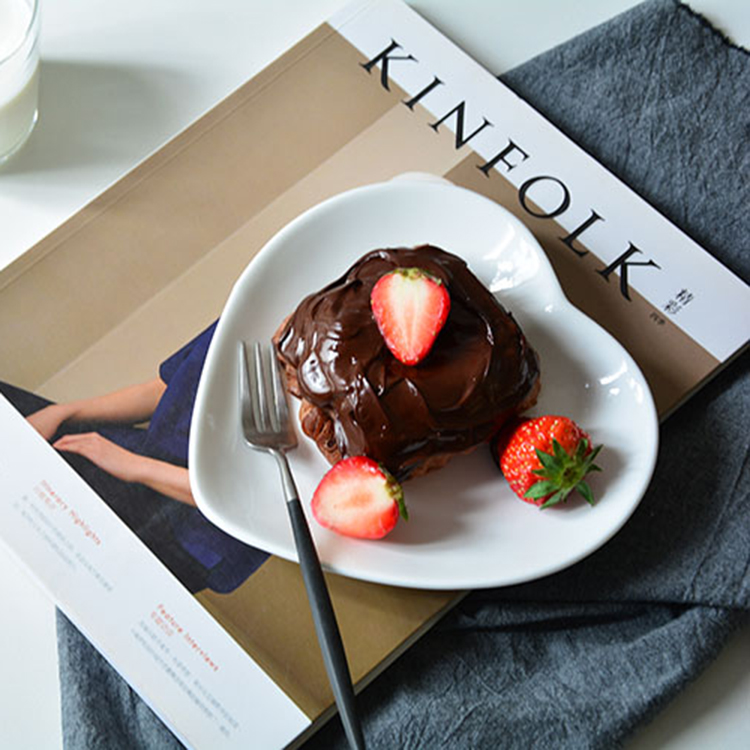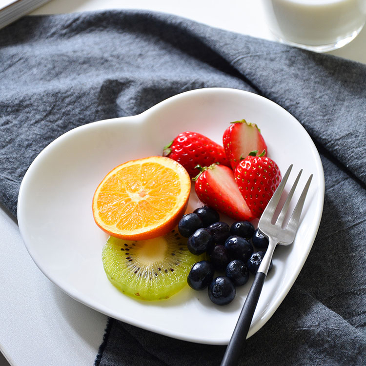 Peach heart white porcelain flat plate Nordic style simple peach heart shallow plate Dessert plate Bread plate Heat-resistant