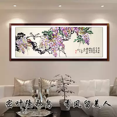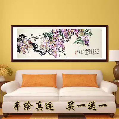Living room bedroom ink hanging painting Chinese painting Peony painting Wisteria flower and bird decoration Luoyang pure hand-painted authentic six feet