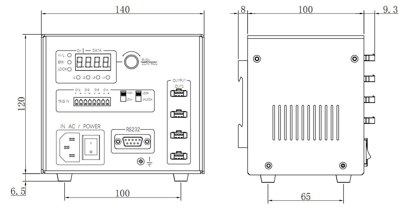 Machine vision light source DIN rail style 4-way digital controller 4-channel controller DGL-24W100-T4
