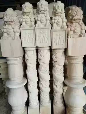 Customized indoor solid wood stair handrail General column guardrail loft window wooden escalator handrail pure solid wood