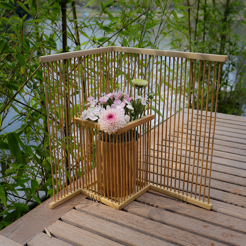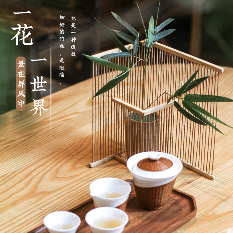 There are wooden bamboo vase vase vase flower plug in Japanese tea ceremony new Chinese Zen bamboo art dry flowers