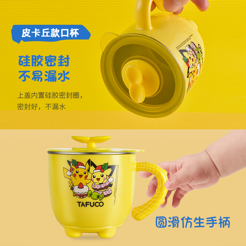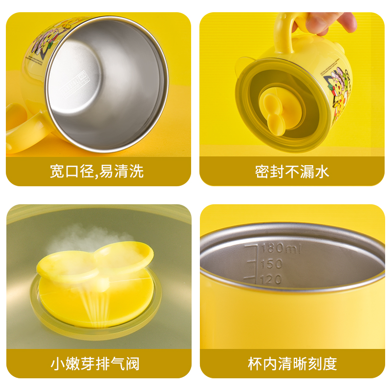 Pikachu 304 stainless steel baby cup cup pocket drink cup anti - drop kindergarten cover