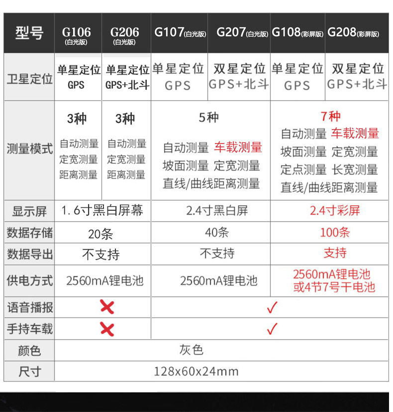 G106 white light versionG206 white light versionG107 white light versionG207 white light versionG108 color screen versionG208 color screen version