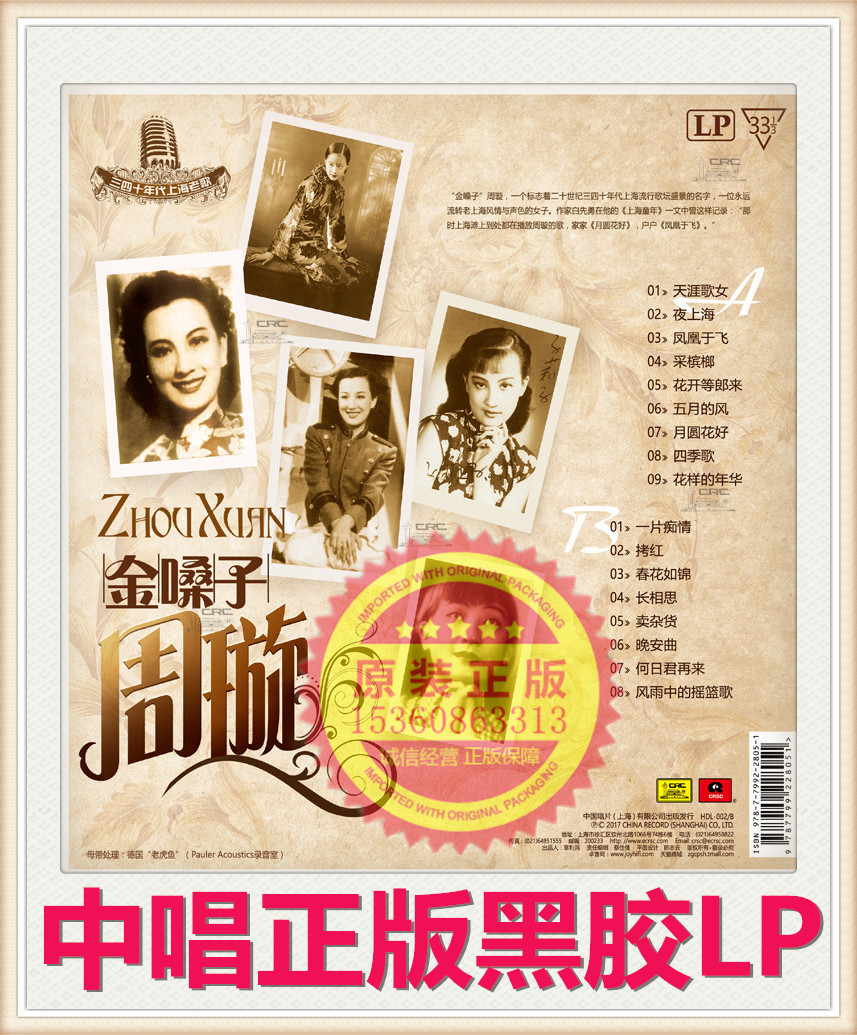 Brand new genuine 3 40s Shanghai Laosong Golden voice Zhou Xuan LP Blackglue Records Regrammater Special 12-inch