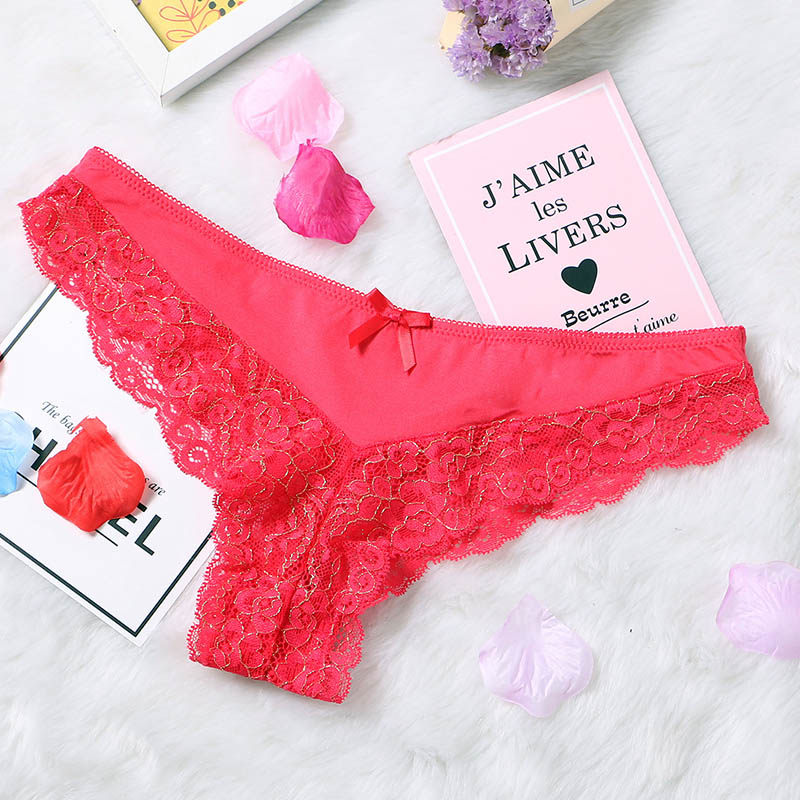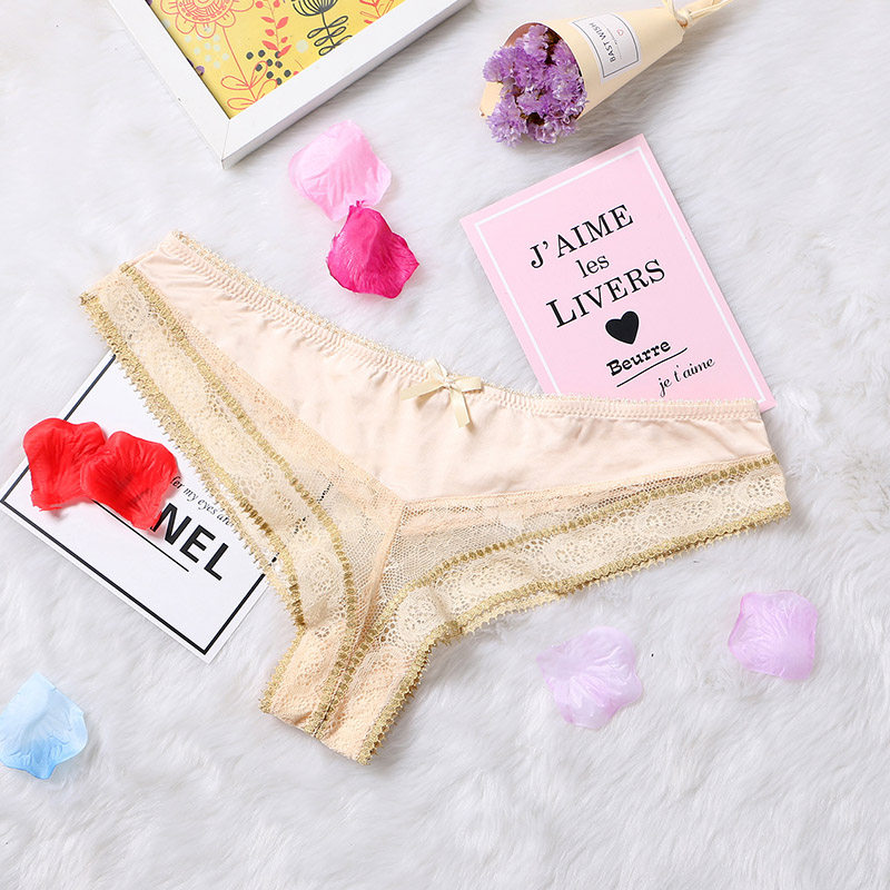 Lace Wide T Pants Fire Hot Triangle Pants Woman Type Low Waist Pure Color Europe and America Sexy Sexy Paragraph No Marks soft and semi-wrapped Hip Underwear