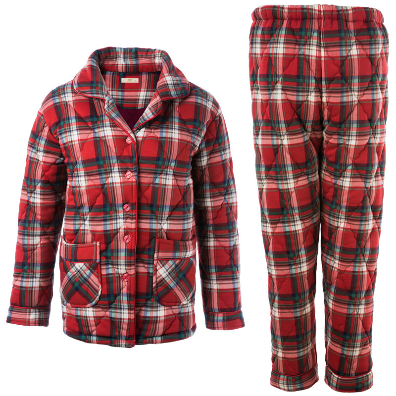 Pajamas Woman Autumn Winter Thickened Pure Cotton Plaid Advanced Sensation Full Cotton Triple Clip Cotton Padded Jacket can be worn outside the home Suits Suit