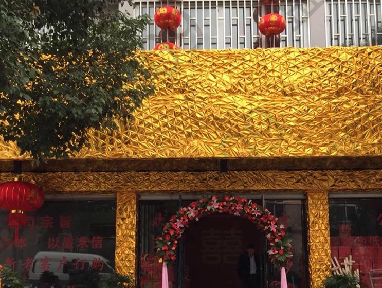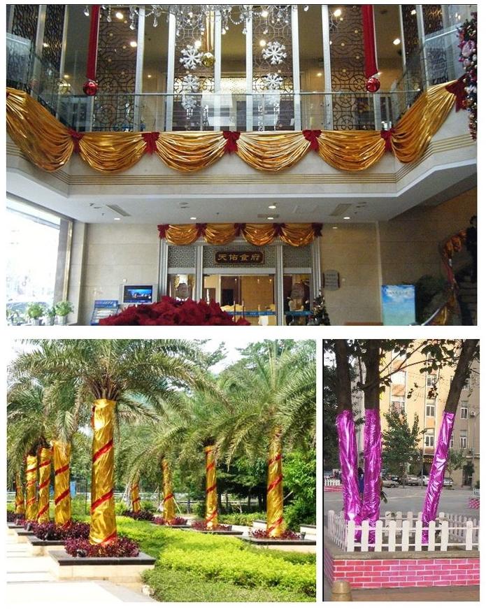 Yellow plastic film car 4S shop golden wrapping tree gold paper outdoor wrapping pillar holiday lights fold bronzing cloth