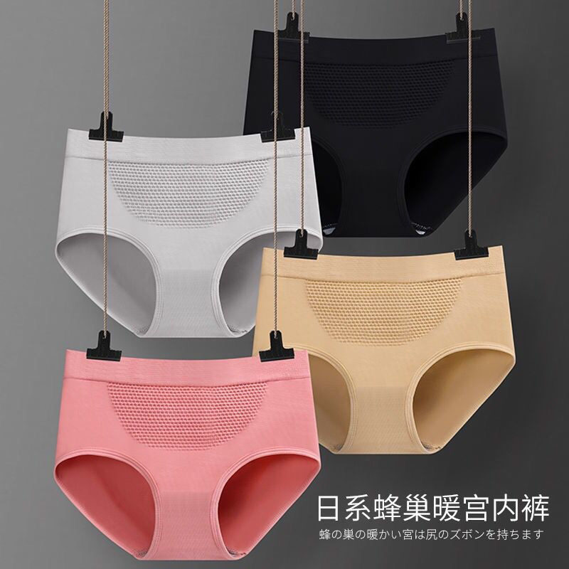 2 packs of Japanese mid-waist butt-lifting high elastic thin honeycomb warm palace pure cotton breathable large size sexy briefs