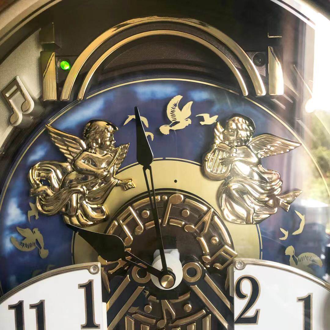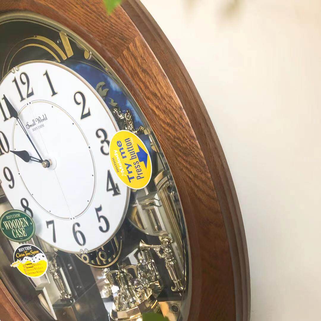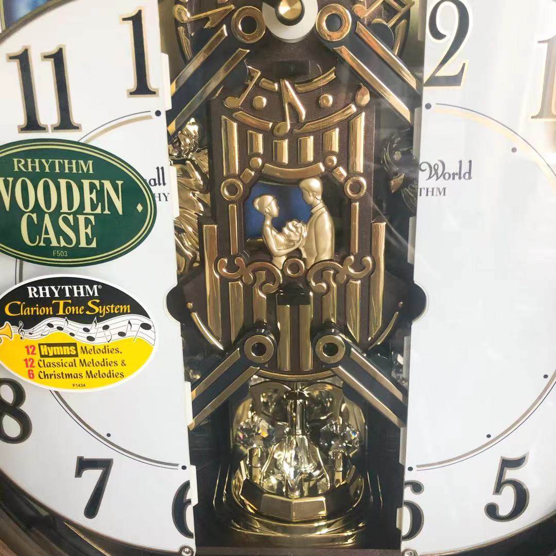 Japanese RHYTHM Lisheng wall clock European Eros Cupid solid wood music timekeeping magic clock 4MH414