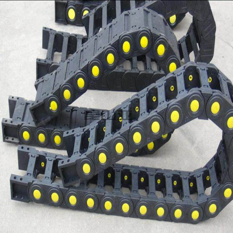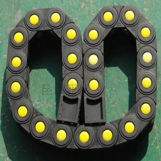 Machine tool cable plastic drag chain TP25 * 57 open bridge drag chain with yellow dot reinforced nylon drag chain