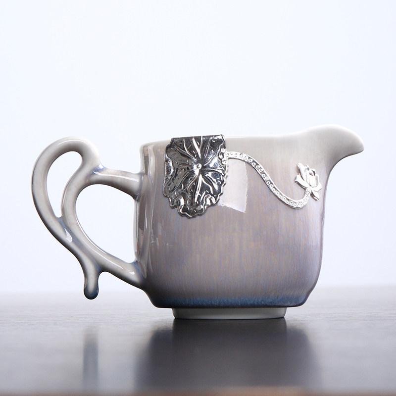 Kiln change inlaid pure silver ceramic fair cup large number thickened heat-resistant sub-tea ware tea sea-day style Gongfu tea fitting-Taobao