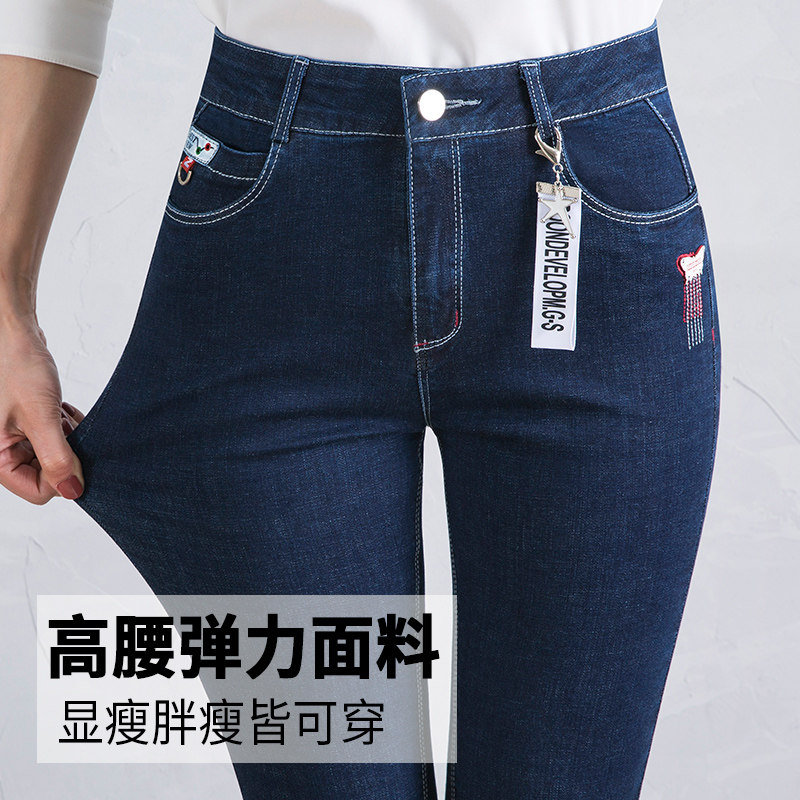 Spring and autumn 2020 new small pants Middle Mom jeans lady large strength high waist long pants