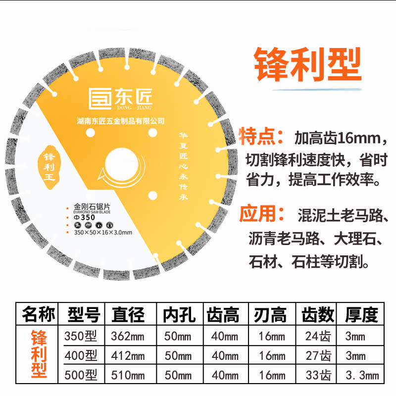 Dongjiang 500 road cutting piece 400 concrete cement road cutting machine cutting seam piece saw blade 350mm