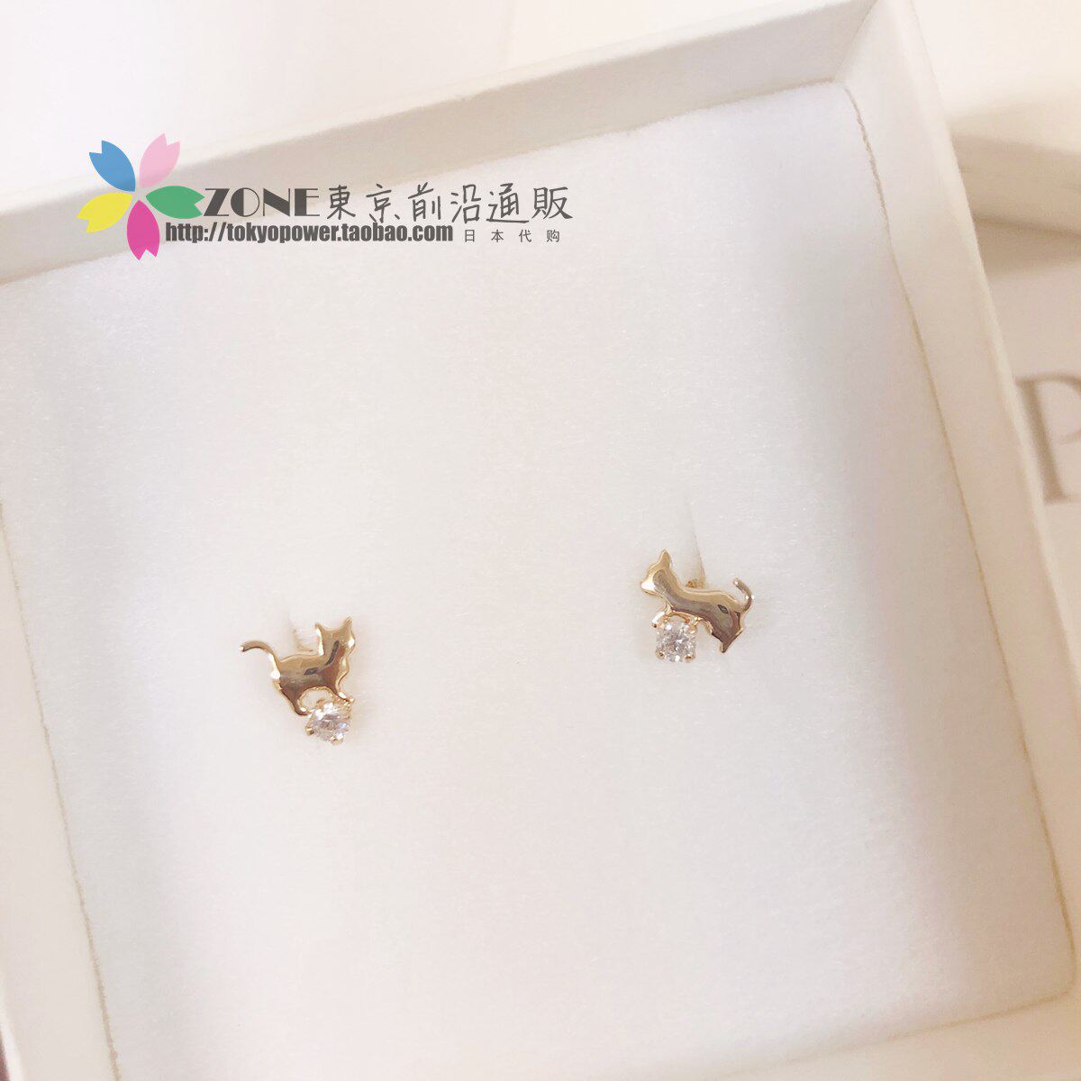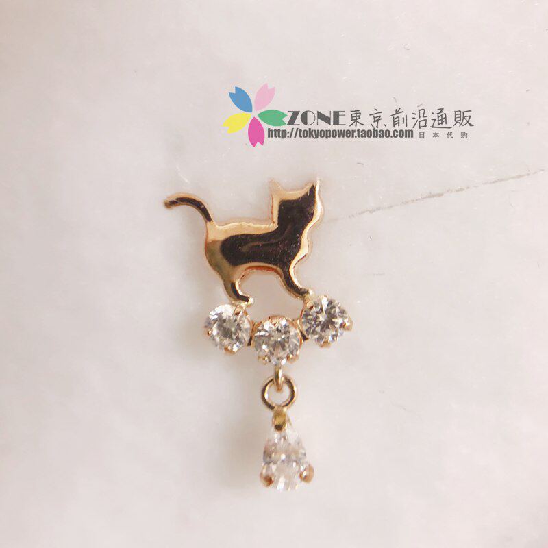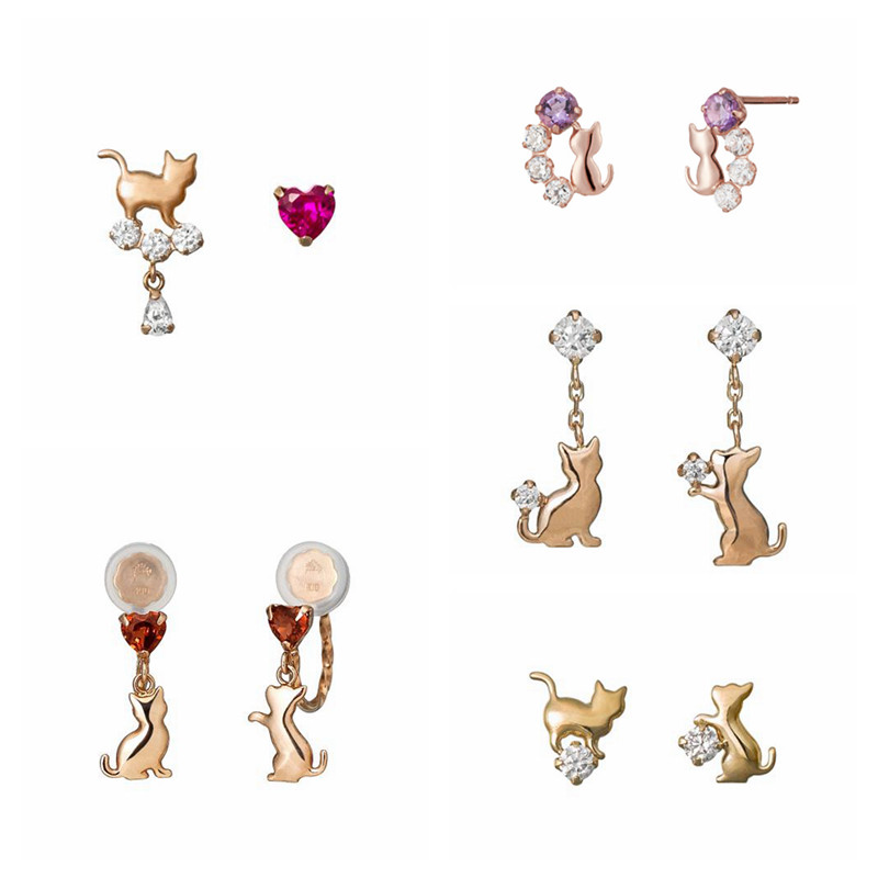 Japanese takeup soft cute cat series cute and lively shape zircon crystal 10K ear pin ear clip