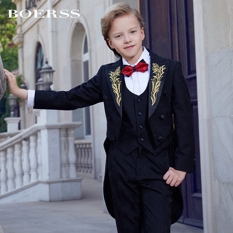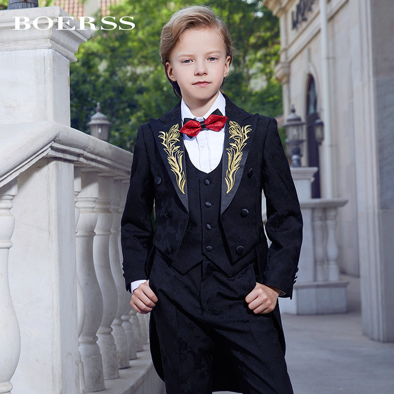 BOERSS Boy Gown Suit Tuxedo Children Suit Embroidered Dress Model Fashion Walk Show Gown