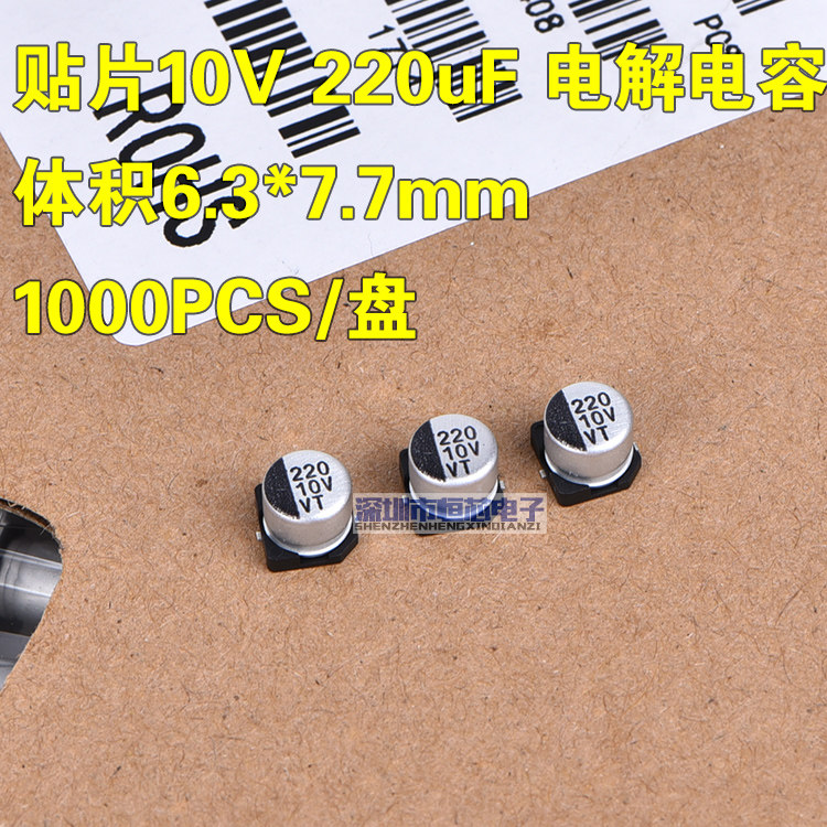 Whole disc price patch aluminium electrolytic capacitor 10V 220UF volume 6 3 * 5 4mm 6x5 plate 1000