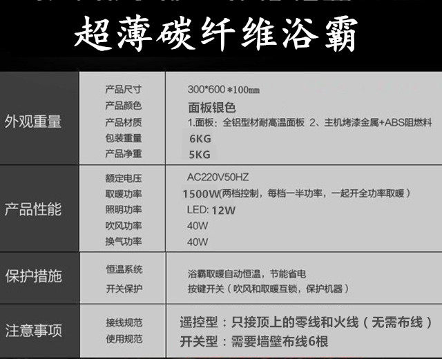Wireless remote control integrated ceiling carbon fiber gold tube heater Multi-function bath bully five-in-one ceiling embedded