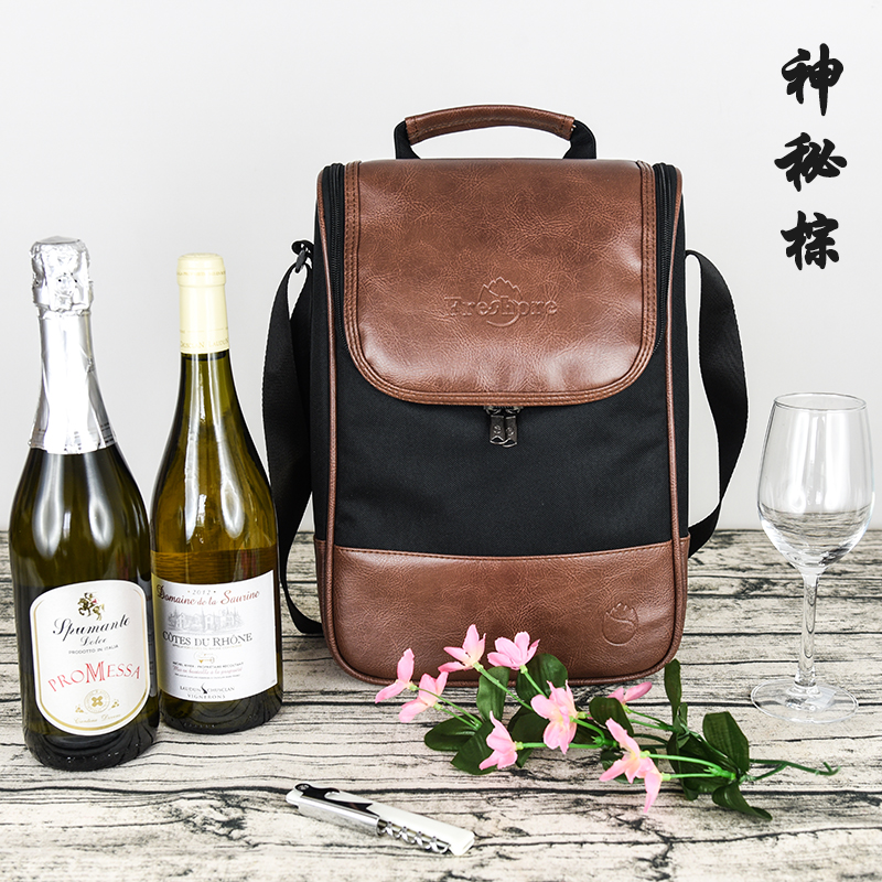 Huierlai outdoor wine bag high-grade red wine insulation bag double bottle wine leather box gift bag elders birthday gift bag