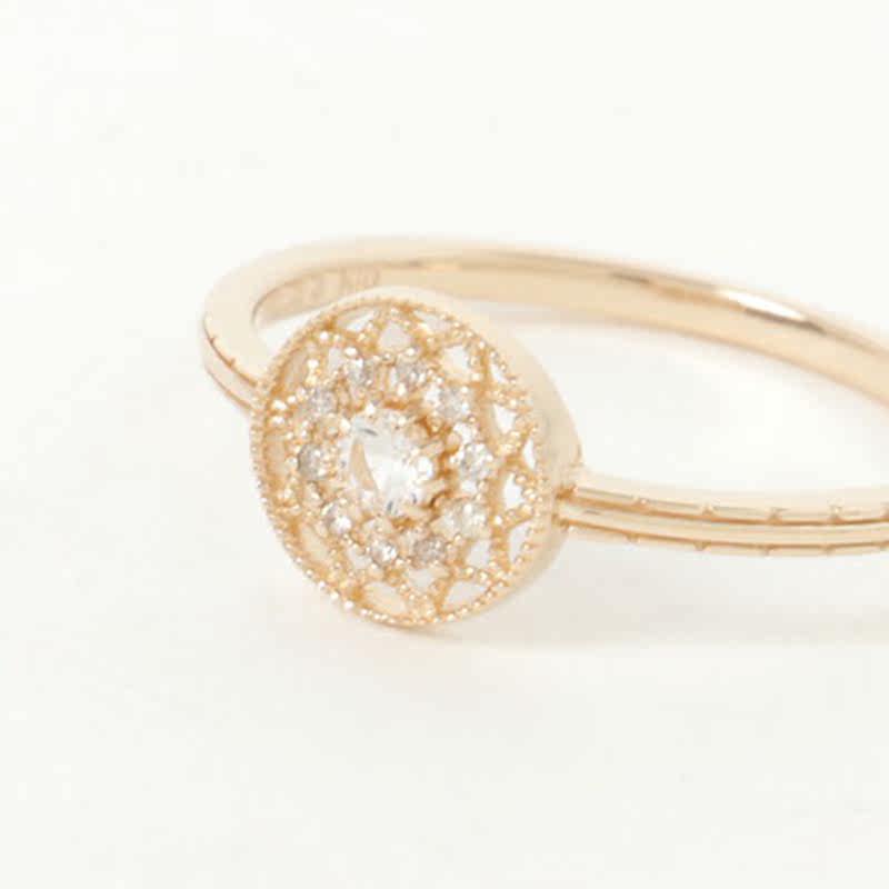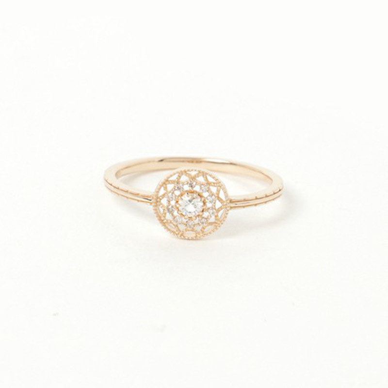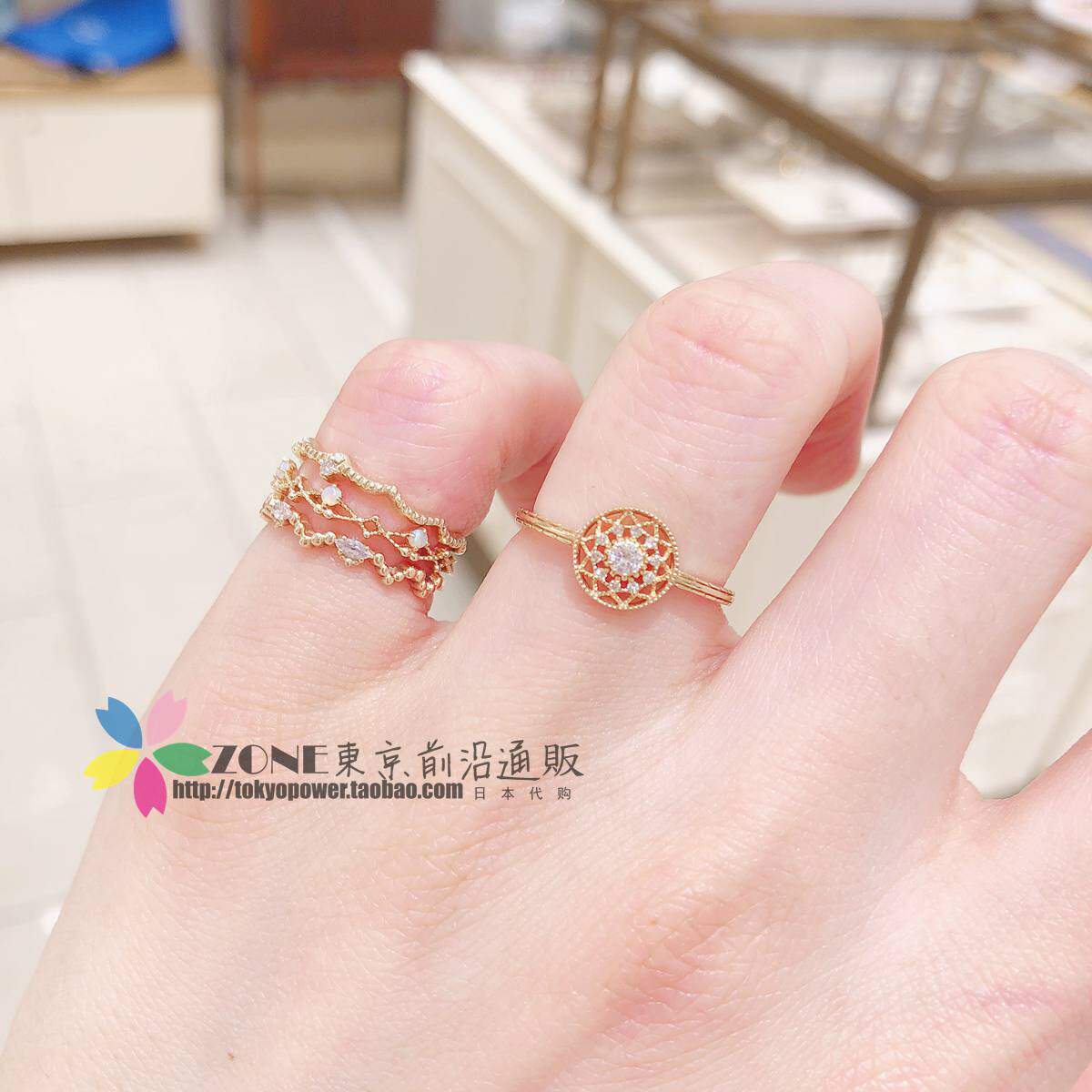 Japanese Nojess Baroque Wind Blossom Disc Sparkling ten Diamond Yellow jade inlaid 10K gold ring tail ring