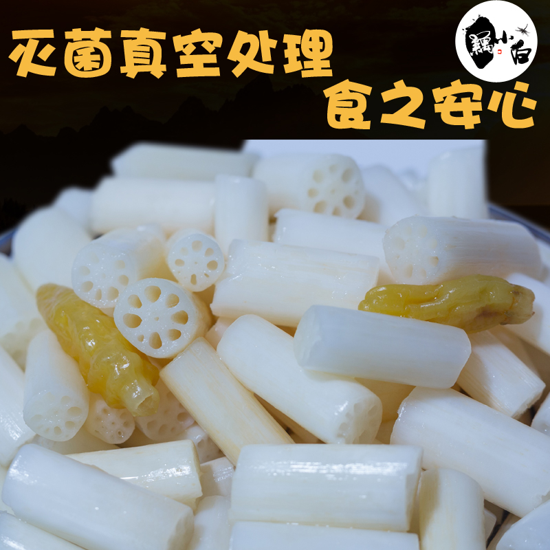 Fresh lotus root with purified water, millet pepper, white vinegar, salt, white sugar, monosodium glutamate, etc.