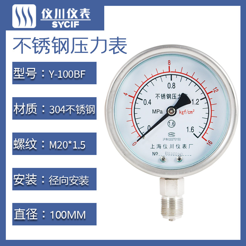 Manufacturer Direct sales Shanghai Yichuan meter factory full stainless steel vacuum pressure meter hydropressure high temperature resistant and corrosion resistant