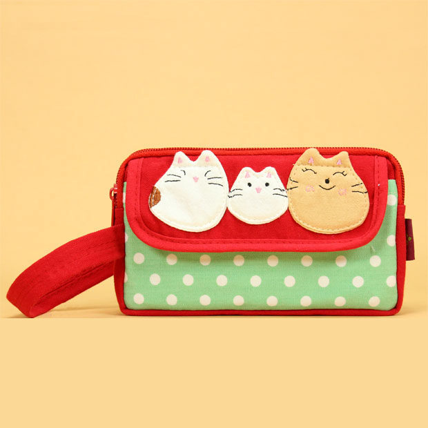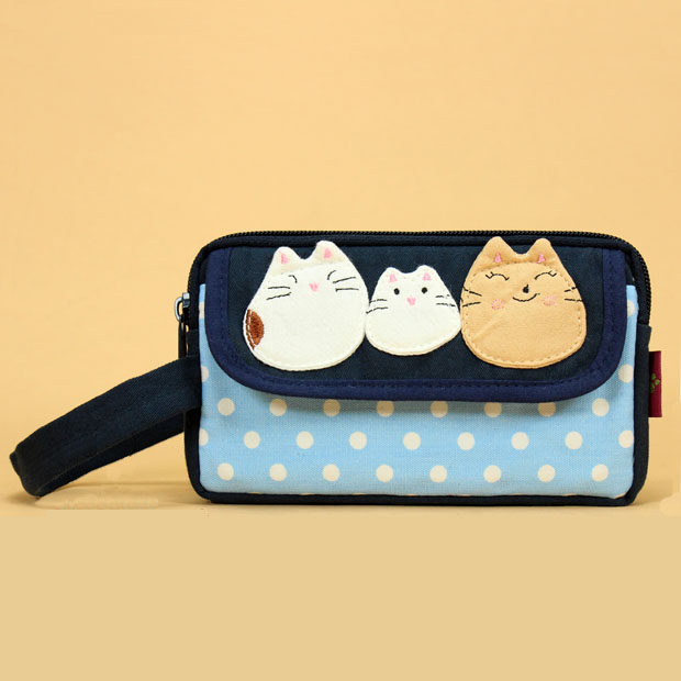Japanese and Korean cute cat canvas multi-layer sundries bag women's small bag mobile phone bag coin purse mobile phone bag makeup clutch