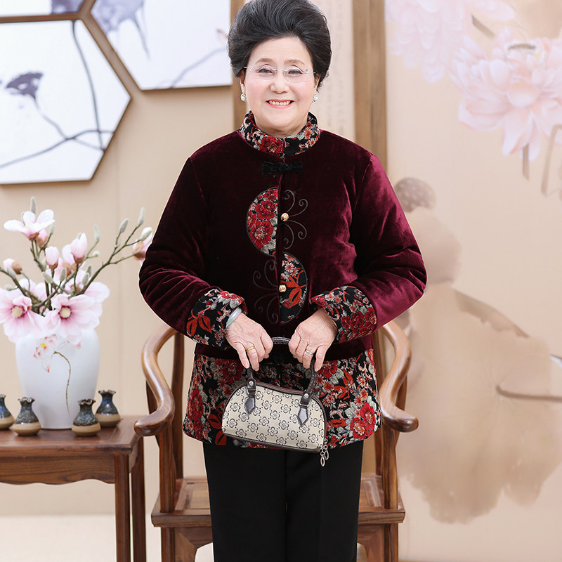 Large size Chinese aged mom clothes Winter cotton clothes Gats up Grandma Tang dress cotton padded jacket with velvety thickened New Year's cotton clothes