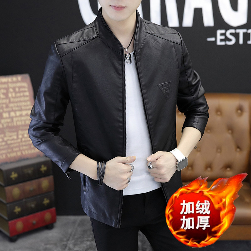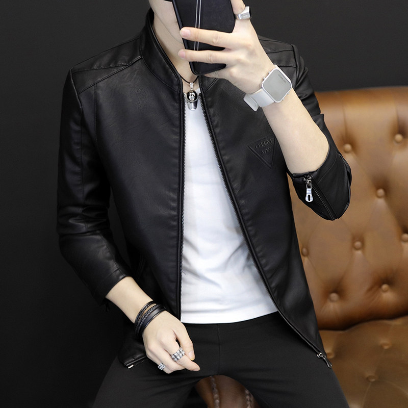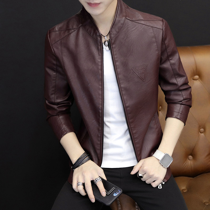 Leather jacket men 2021 new handsome imitation leather jacket trend Korean version leather clothes autumn winter spring and autumn coat