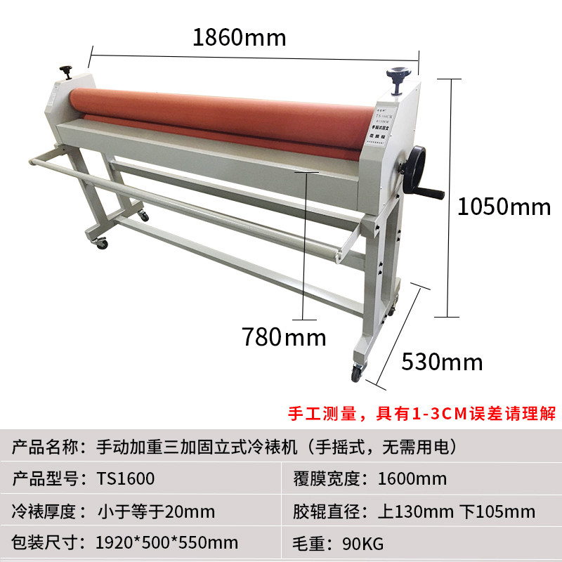 1.3 meters Rubber roller plus heavy duty 72KG1.6 meters Rubber roller plus heavy duty 80KG three reinforcement bracket 1.3 meters weighted cold mounting machine three reinforcement bracket 1.6 meters weighted cold mounting machine 1.3 meters Desktop cold mounting machine 35KG 1.3 meters Rubber roller ordinary type 60KG1.6 meters Rubber roller ordinary type 70KG1600 gray weight reinforced rubber roller cold mounting machine 1300 gray weight reinforced rubber roller cold mounting machine 1600 electric manual dual-purpose electric mounting machine 1600 manual pneumatic dual-purpose (excluding air pump) 1600 electric pneumatic dual-purpose (excluding air pump) 650 electric manual dual-purpose 1600 high elastic roller three solid brackets 1600 thickened lbS650 manual 1600650