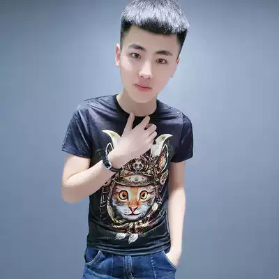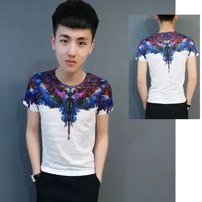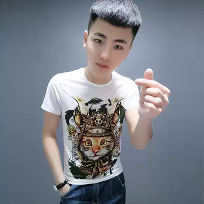 Spirit guy round neck short sleeved men's T-shirt summer new all-match ice silk stretch social people printed slim T-shirt
