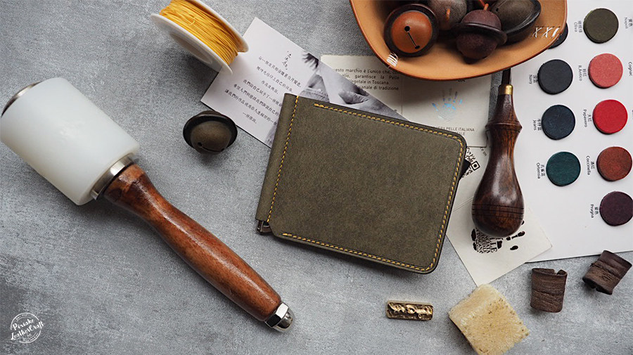 Leather Knight PXK-handmade cowhide spring hairclip wallet card Italian vegetable tanned leather custom lettering gift