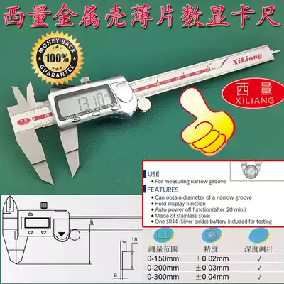 Western measuring sheet CNC caliper 0-150 200 300mm Blade caliper Narrow groove measuring groove Electronic caliper