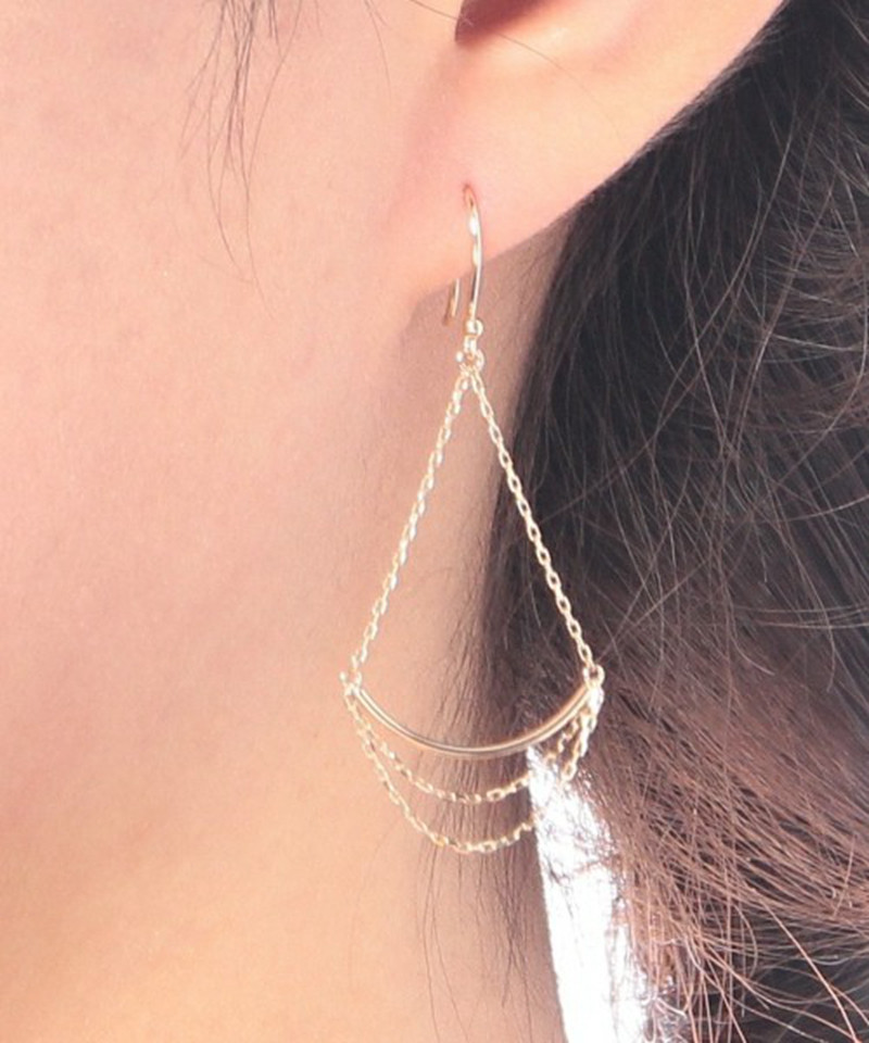 Japan COCOSHNIK FASHION BRIEF Three-story Arc Smile 100 Hitch 10K Gold Necklace Woolen Clothing Chain Earrings