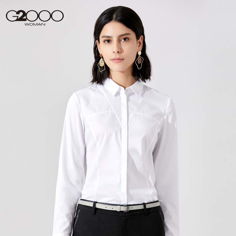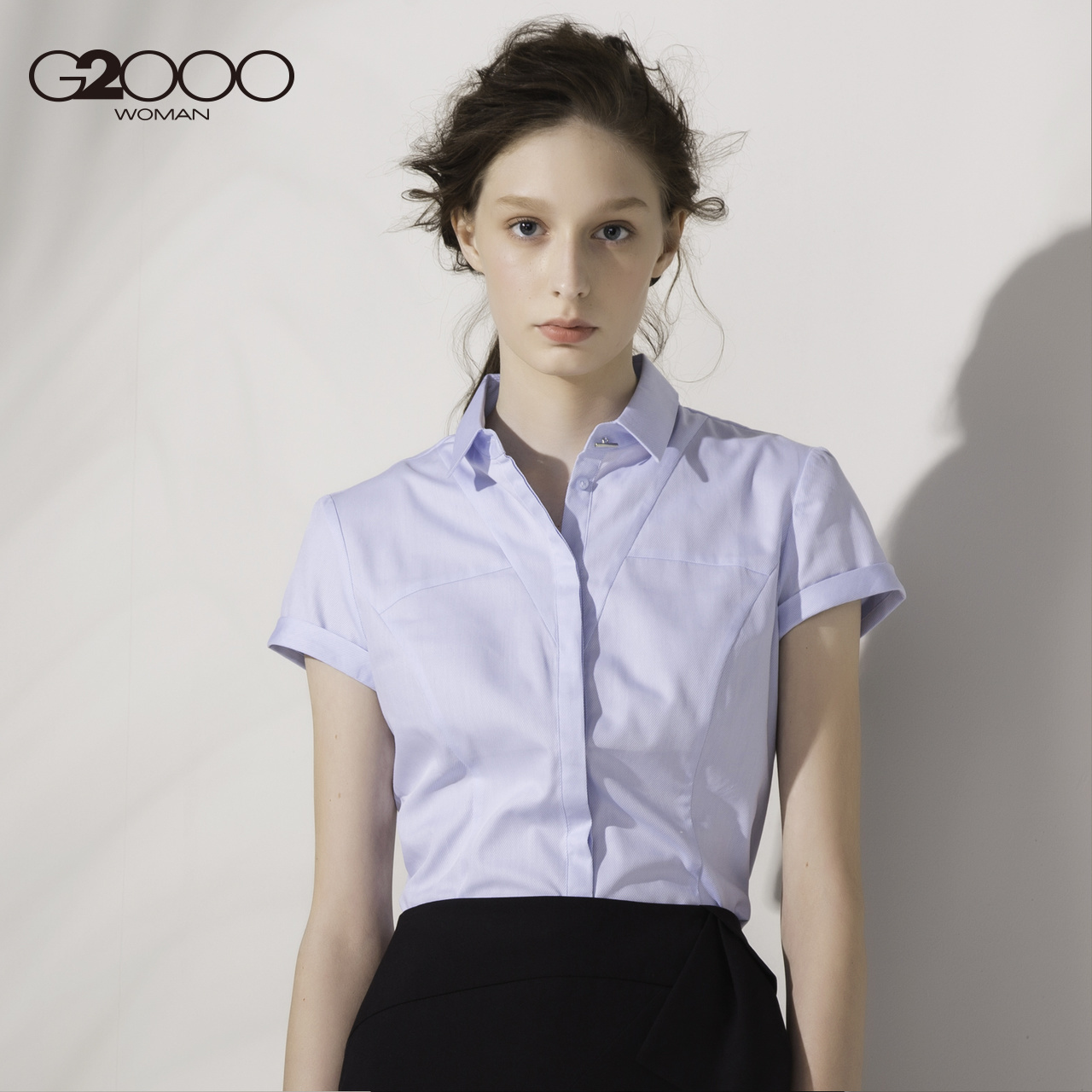 G2000 business casual women's short-sleeved shirt spring and summer simple stitching slim solid color square collar shirt women