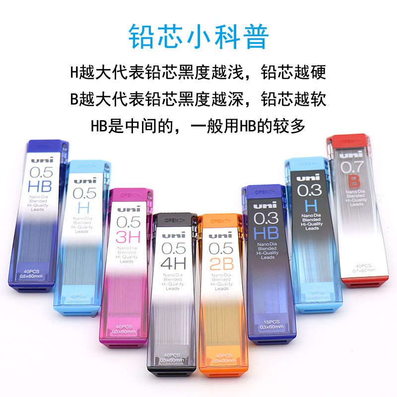 Japan imported uni Mitsubishi mechanical pencil lead 0 5 0 3 0 7 lead core super hard and not easy to break movable pencil lead 0 5-202ND automatic pencil lead 2b 2h hb