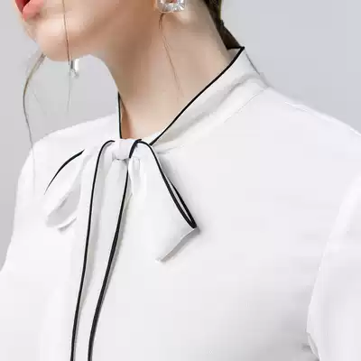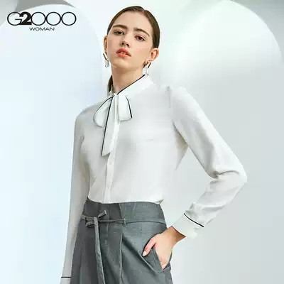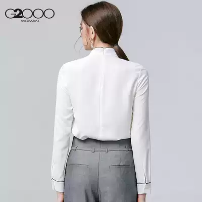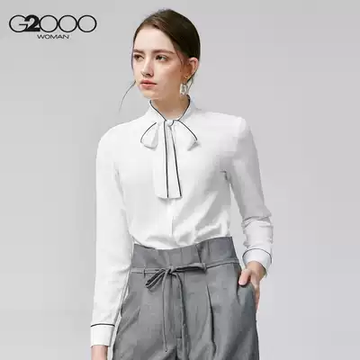 G2000 Bow lace-up long-sleeved shirt Elegant solid color stand-up collar women's casual top