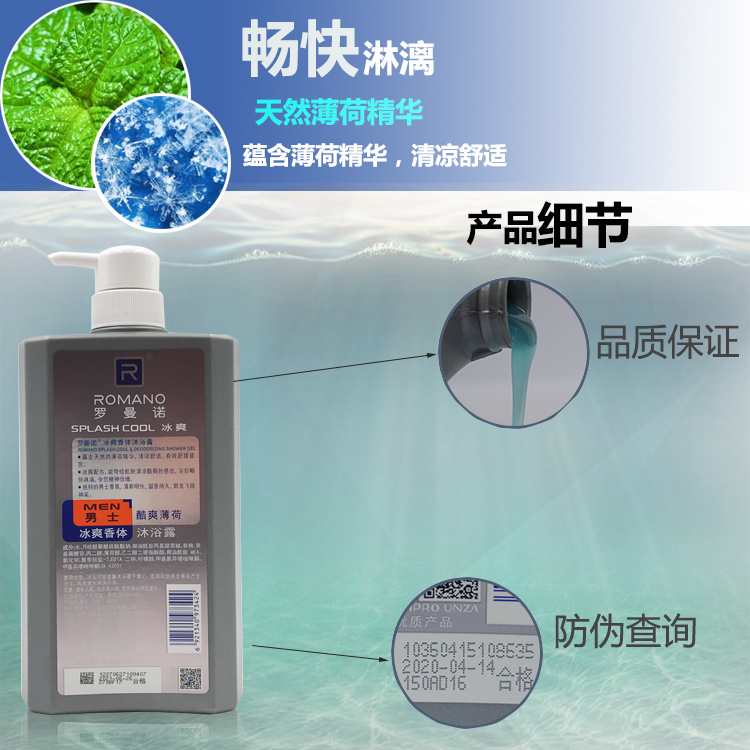 Romano Men's Fragrance Body Shower Gel Icy 600ml Long-lasting Fragrance Icy Mint