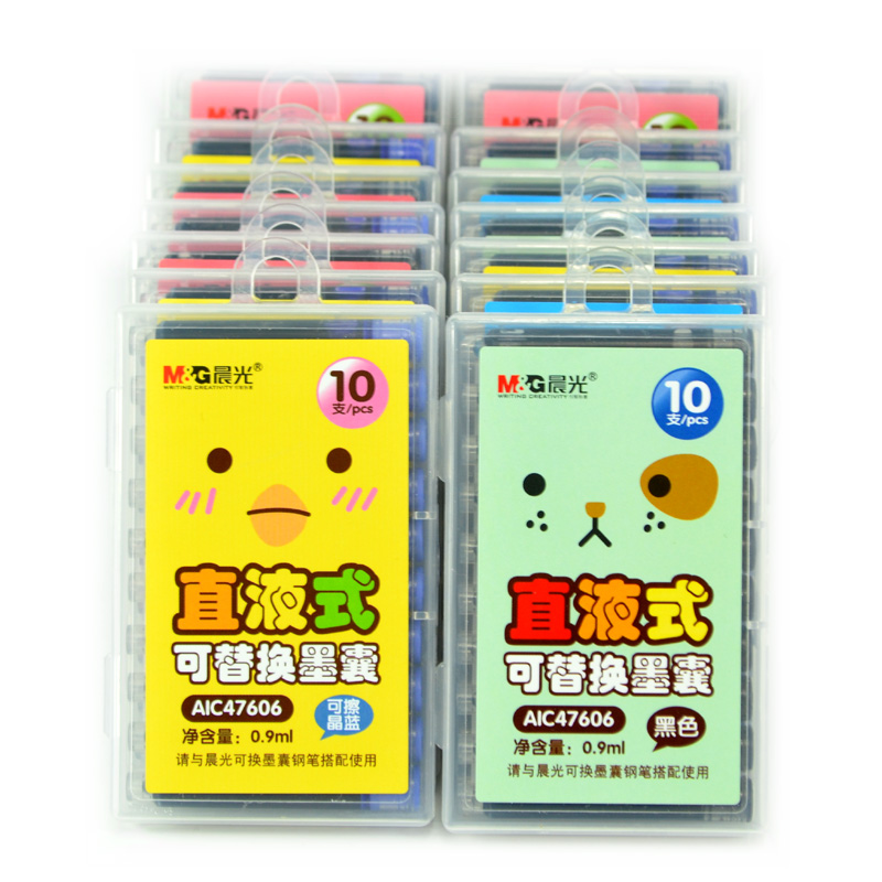 Morning Light 50PCS Primary school Junior high school high school student AICT3601 ERASABLE ink capsule Ink GALL PURE blue 3 4MM BLACK red Crystal blue Metal pen Universal replaceable wholesale CALIBER 2 6MM