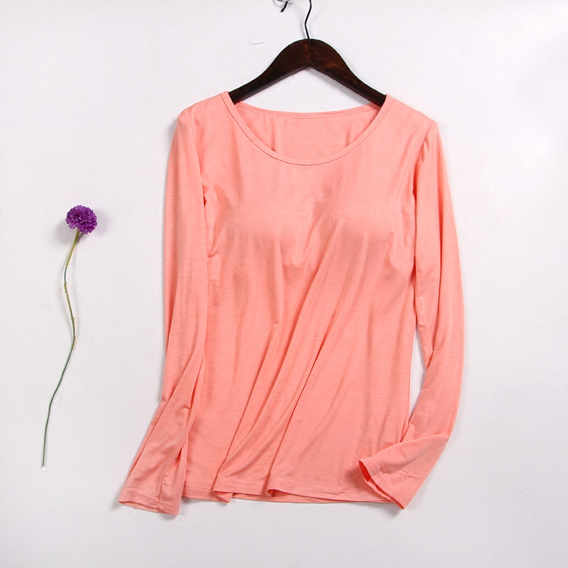 With chest cushion new long sleeves T-shirt woman free from bra cups integrated Modale vest with undershirt easy to wear outside