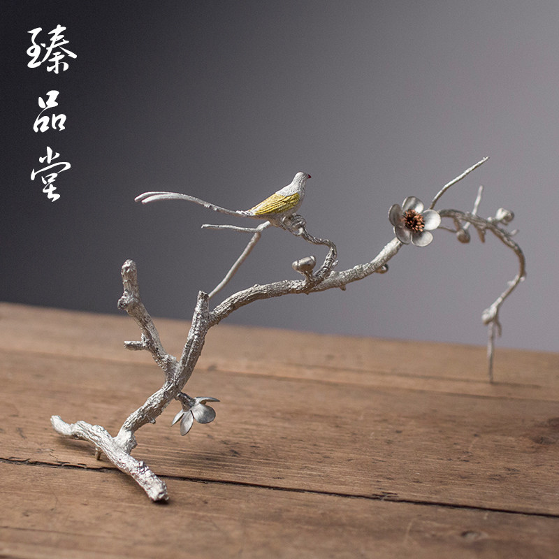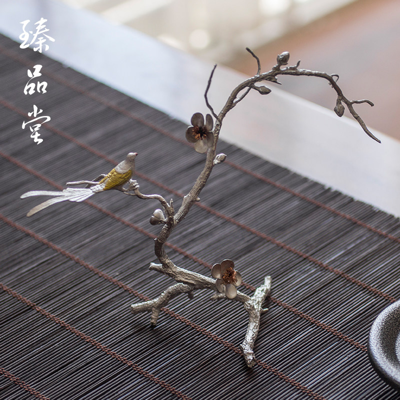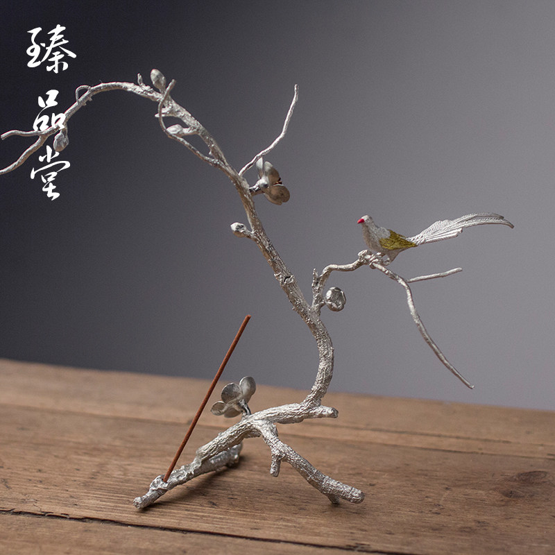 Pure tin ornament incense stick incense road accessories home agarwood sandalwood Japanese flower and bird metal incense burner plum blossom saucer