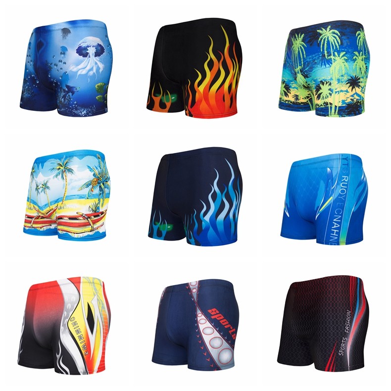 Men's swimming trunks fashion printed adult plus size flat angle men's beach shorts hot spring swimsuit factory direct sales
