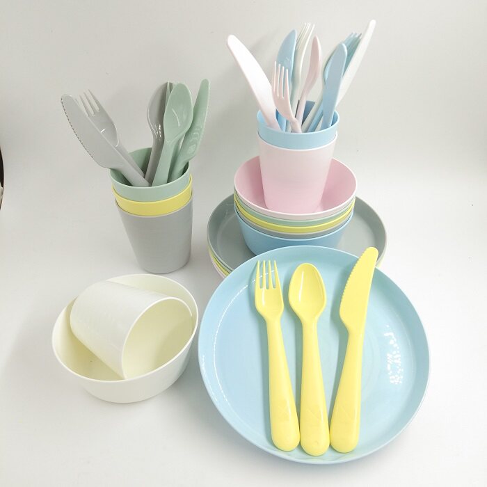 Ikea domestic children's tableware Kallas large cup knife and fork dishes plate plastic cup color kindergarten