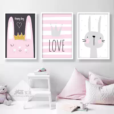 Children's room cartoon living room decoration painting ins Wind bedroom Nordic style pink girl girl heart bedside painting