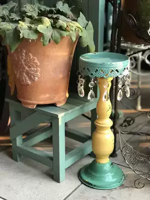 French country wrought iron made old color crystal candle holder flower stand gardening ornaments wedding romantic home