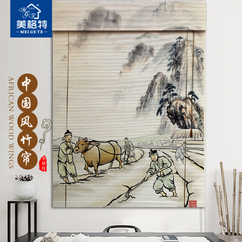 Printed bamboo curtain shading curtain roller shutters partition screen curtain book room tea room tatami Japanese style spray painted bamboo curtain
