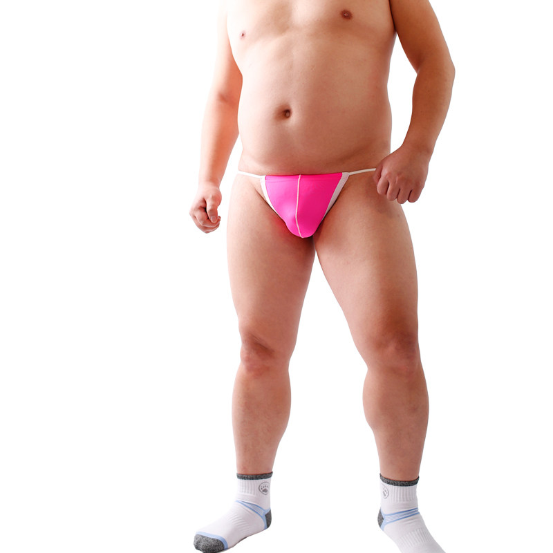 Design real-life photo of fat man large size men's fat bear claws pink sexy tempting single thong