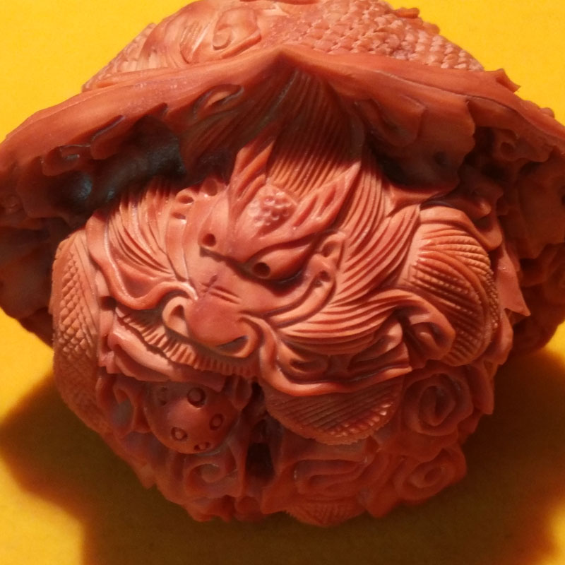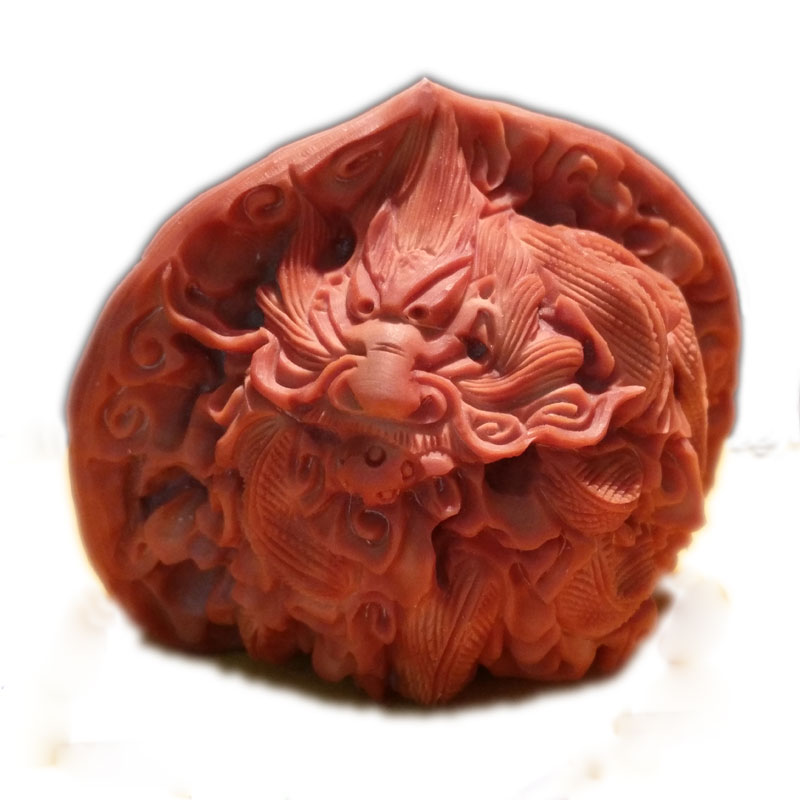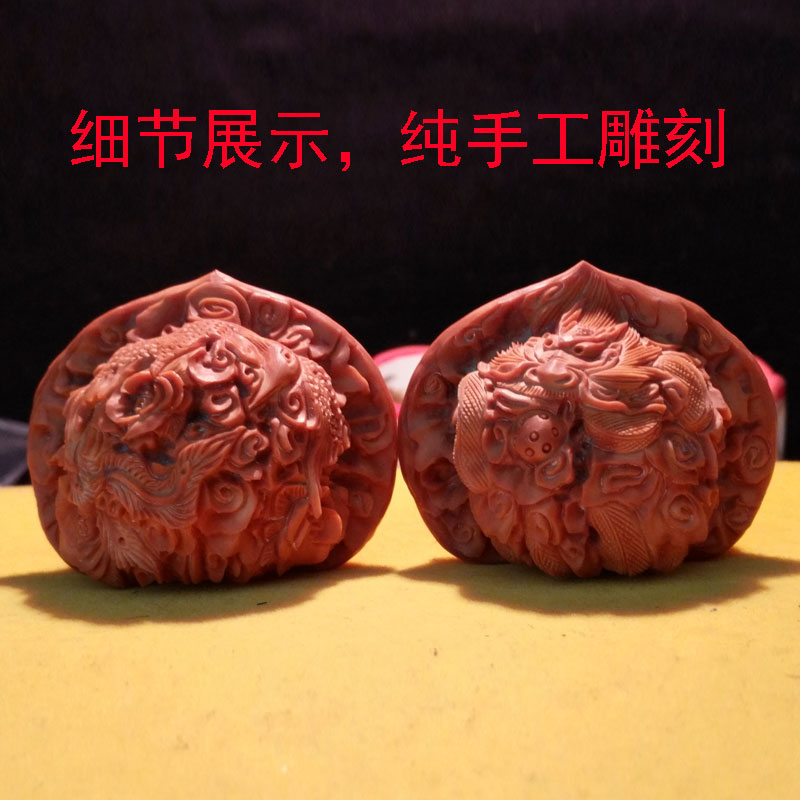 Wenwan walnut handle piece official hat pure handmade boutique carving dragon and phoenix Chengxiang double dragon play beads special price