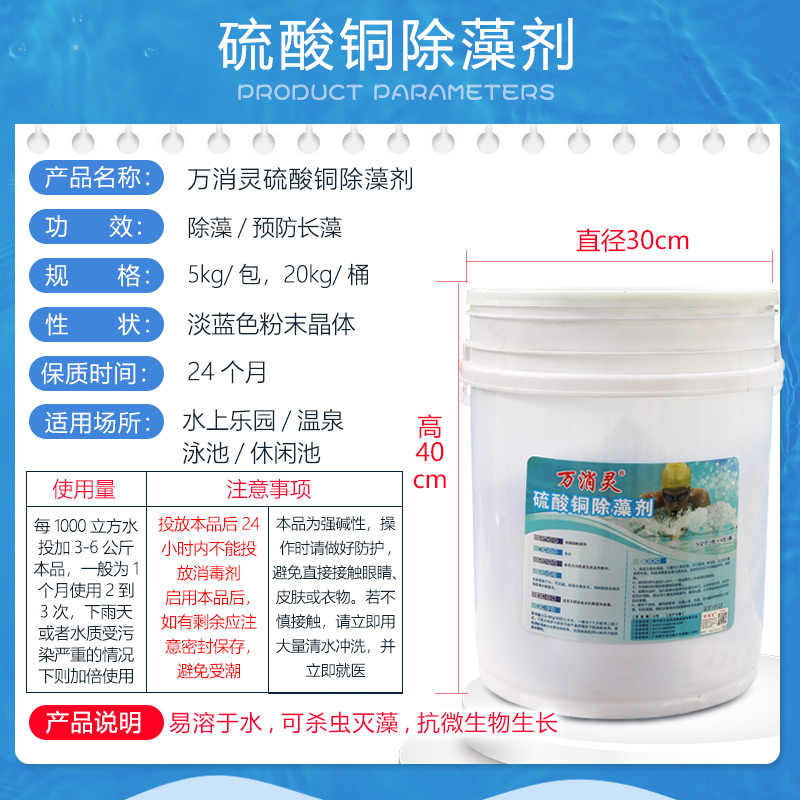 Wanxiaoling swimming pool special copper sulfate crystal powder fungicide algae water clarifier swimming pool algae remover