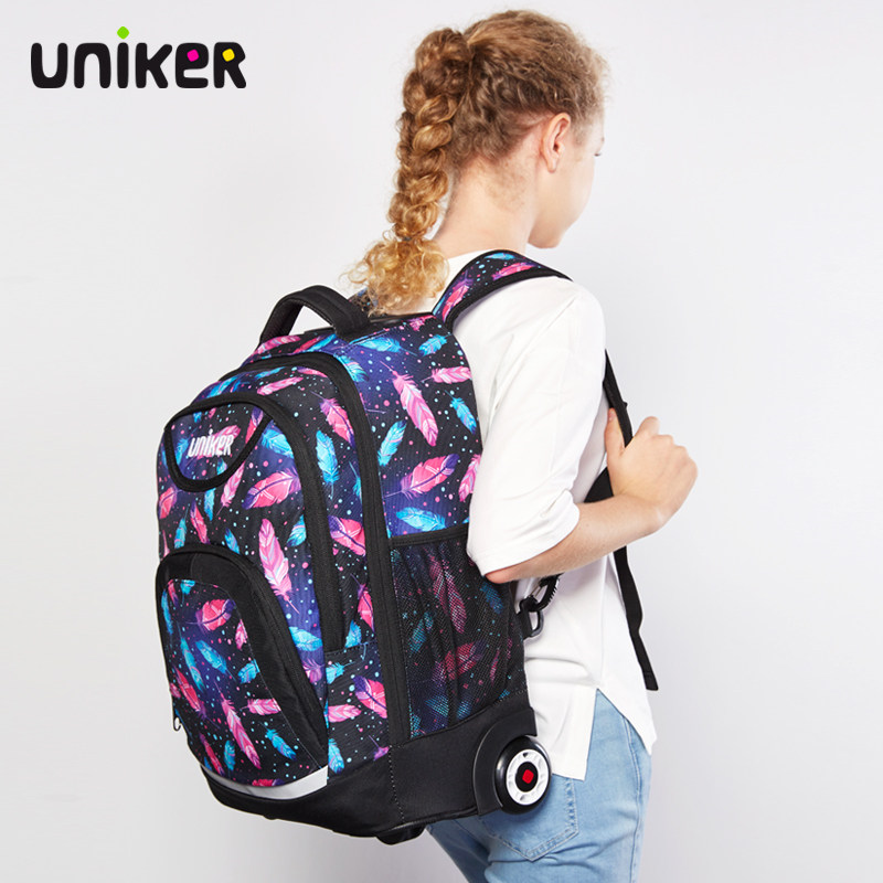 Uniker mute wheel trolley backpack girl primary school boy junior high school fashion travel leisure luggage backpack