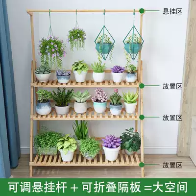 Living room hanging multi-layer flower rack solid wood floor-to-ceiling balcony decoration fleshy hanging basket flower pot space-saving modern simplicity